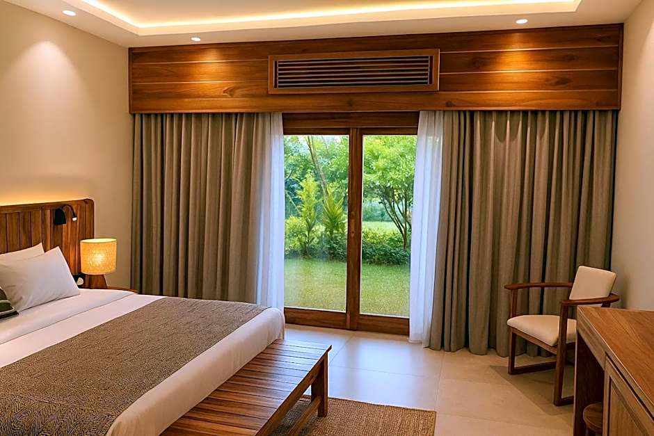 The spacious double room features air conditioning, a seating area, a balcony with garden views as well as a private bathroom boasting a walk-in shower. The unit has 1 bed.